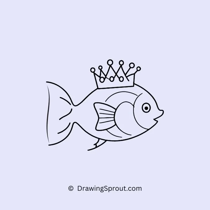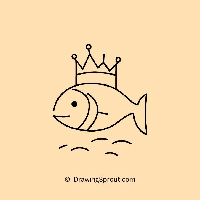 Draw a fish wearing a tiny crown. Start with a simple fish shape and place a small crown on its head, making it look royal. Add tiny gems on the crown to make it sparkle.