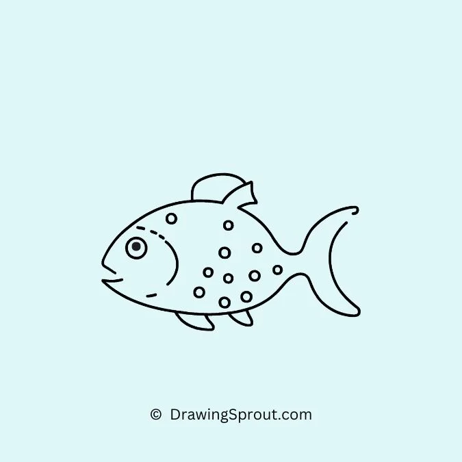 Draw a fish covered in spots. Start with a basic fish outline and fill its body with various-sized spots for a playful look. Make the spots different shapes and sizes for variety.