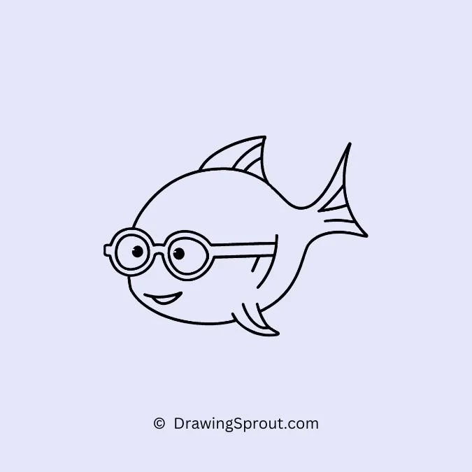 Draw a cool fish wearing sunglasses. Start with a simple fish shape and add a pair of sunglasses, making it look stylish. Draw the sunglasses with a sleek design and add a reflection on the lenses.