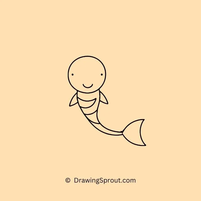Sketch a fish with a mermaidโs tail. Create a simple fish outline and add a mermaid tail, blending the two creatures. Use flowing lines for the tailโs scales.