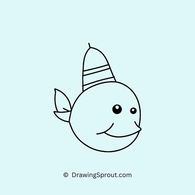 Draw a fish wearing a cute hat. Start with a simple fish shape, and add a small hat on its head for a fun touch. Give the hat some texture, like stripes or a flower.